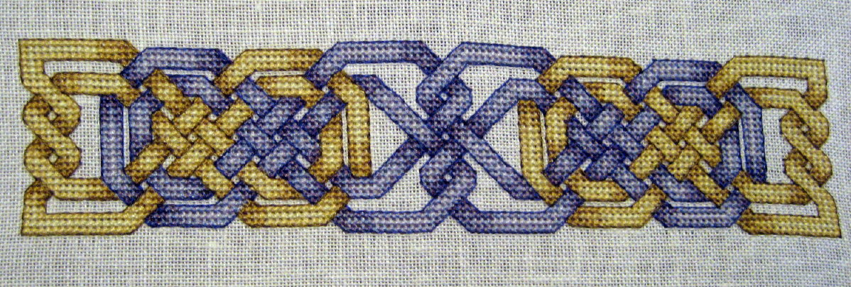 And now a quick break from crochet. This is the second bookmark I've stitched from Teresa Wentzler's Knotwork Bookmarks collection. These are really beautiful designs and they don't take too much time to stitch. At least not compared to Wentzler's larger designs. If I have time to stitch, I can usually complete one of these in 2-3 weeks. I also really like that all the patterns use four shades of a contrast colour and then the gold knotwork. Right now I have my eye on a pink bookmark, but I want to replace the pink with the shades of green that are used in one of the other patterns. I'm hoping it will be easy to substitute out one of the contrast colours for another.