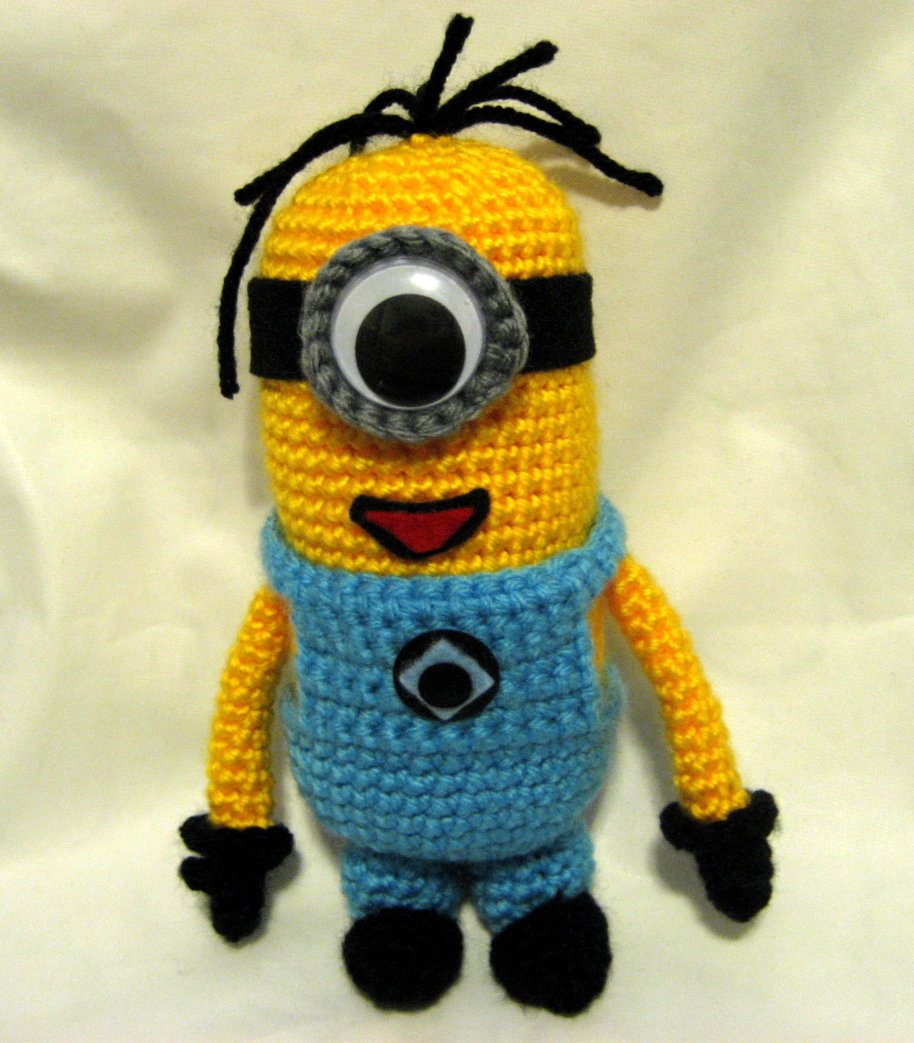 WolfDreamer came up with this fantastic pattern for the minions from Despicable Me. It's very easy to follow and easy to alter to make your favourite of the many minions featured in the film. I created this one-eyed minion as a part of a friend's Christmas gift. Rather than crocheting the eye, I just chose the largest googly eye that I could find in my collection, then crocheted a grey circle around it. My minion was made in Bernat Satin Sunrise, which turned out to be the perfect corn cob yellow for a minion. Every time I look at this I'm struck by how cute the minions are. I really do have to find the time to make a couple of these for myself. I'm thinking of trying the little guy that gets shrunk in the film. After all, he'd be even quicker to stitch up.